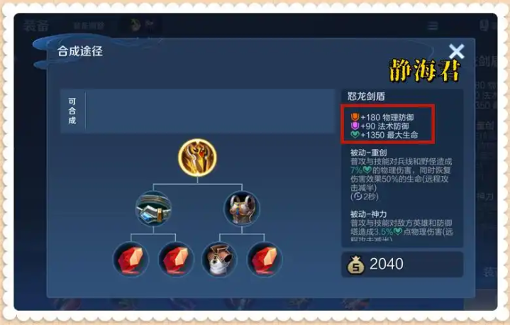怒龙剑盾:物理防御从180→160,降低20点;法术防御从90→80,降低10点。